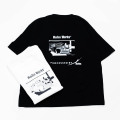 胸元にチェッカーフラッグをあしらったロゴプリント、バックにはヴィンテージカーのイラストと「Hubs Works」のグラフィックを配置。ストリート感のあるデザインが目を引く1枚です。